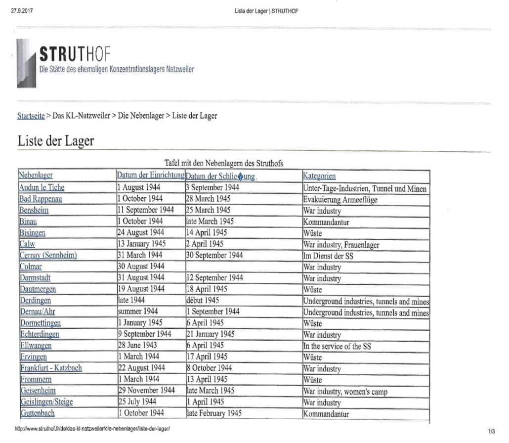 Außerdem gibt es eine Website der Gemeinde Urbès. Diese wurde von Schulklassen des Lycée „Scheurer-Kestner“ in Thann unter Leitung von Madame Marguerite Kubler erarbeitet. Die vorliegende Website wurde aus gewerkschaftlicher Sicht entwickelt. Wir versuchen, den Zusammenhang von Einfluss der Rüstungsindustrie auf die Politik, des Weiteren den Einfluss der Naziorganisationen auf und in Betrieben deutlich zu machen. Außerdem versuchen wir, den Weg der Häftlinge möglichst vom Zeitpunkt der Verhaftung bis zur Befreiung (oder darüber hinaus) zu verfolgen.